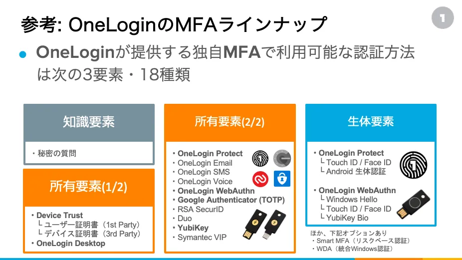 今回のOneLoginオンラインセミナーでは、多要素認証疲労攻撃からエンドユーザーと会社資産を守るために管理者が意識するべきポイントやOneLoginが持つ多様な多要素認証とアクセス制御によってどういった対策が可能なのか、デモンストレーションを交えながら紹介をしました。