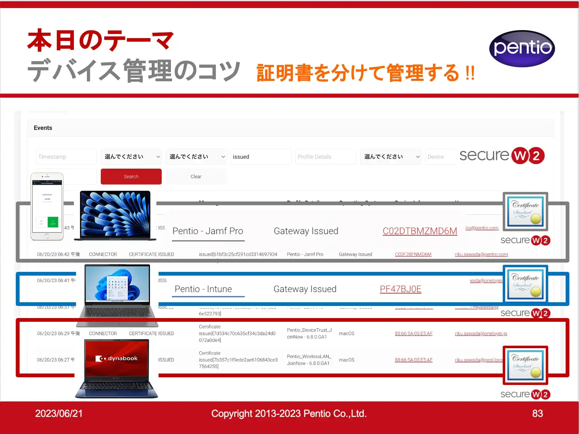 ペンティオ株式会社(本社:東京都千代田区、以下 ペンティオ)は2023年8月23日(水)に、SecureW2オンラインセミナーを開催しました。