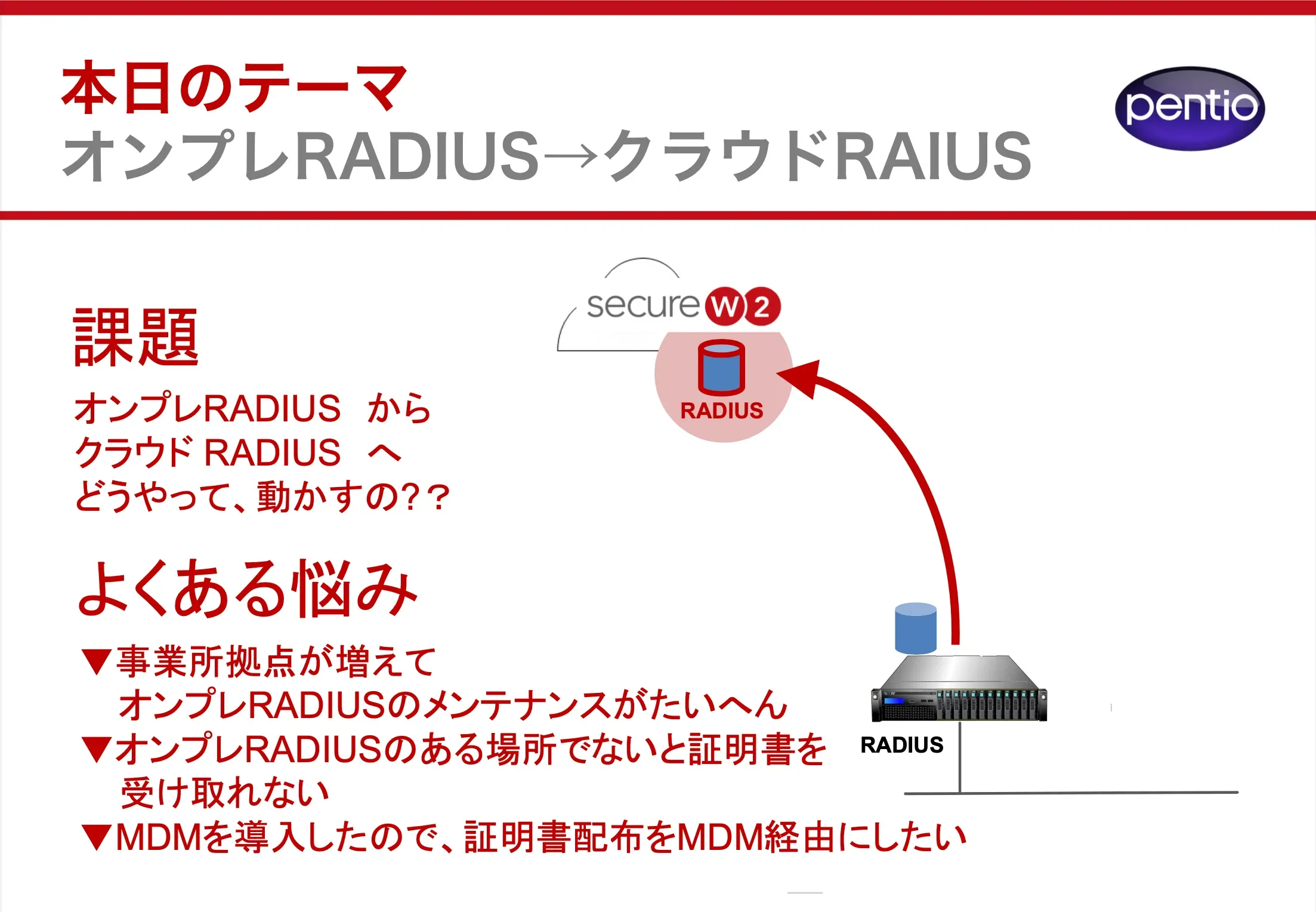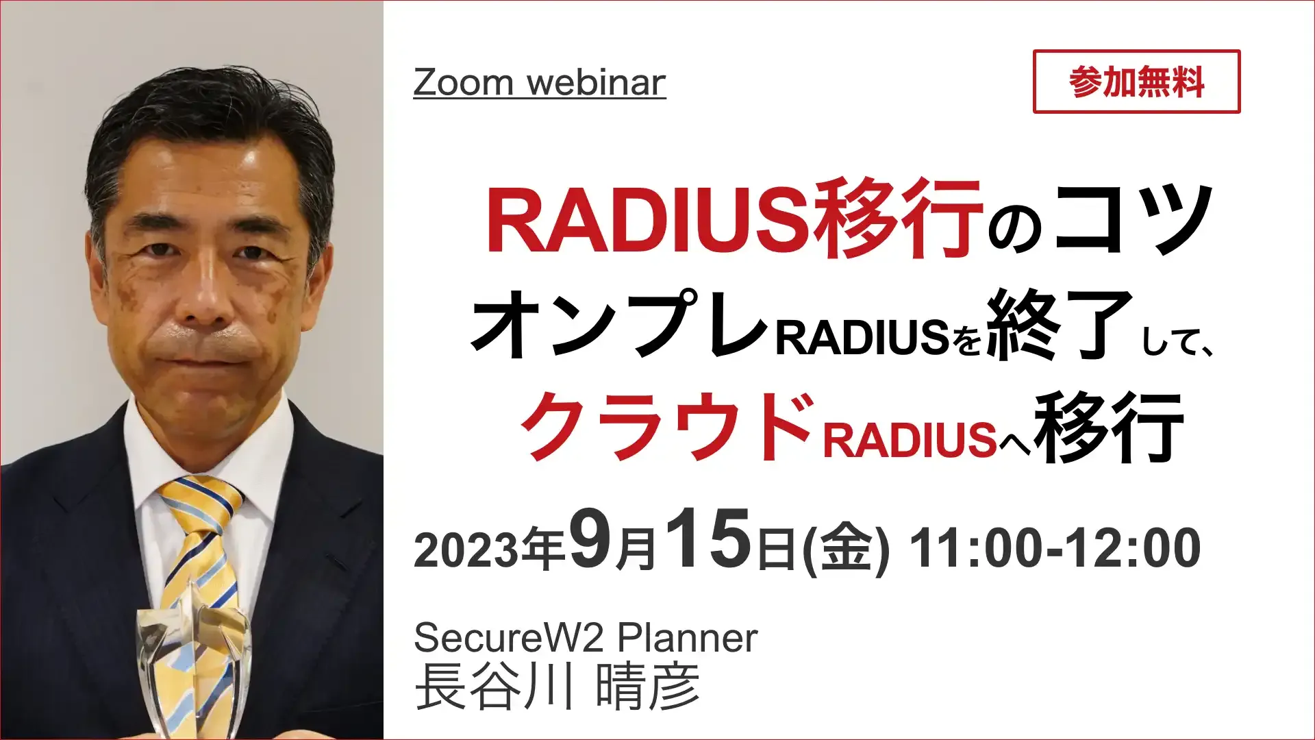 本セミナーは、旧オンプレRADIUSをクラウド型のRADIUSに切り替える方法をテーマに、スムーズにクラウドRADIUSに移行するコツをご紹介しました。