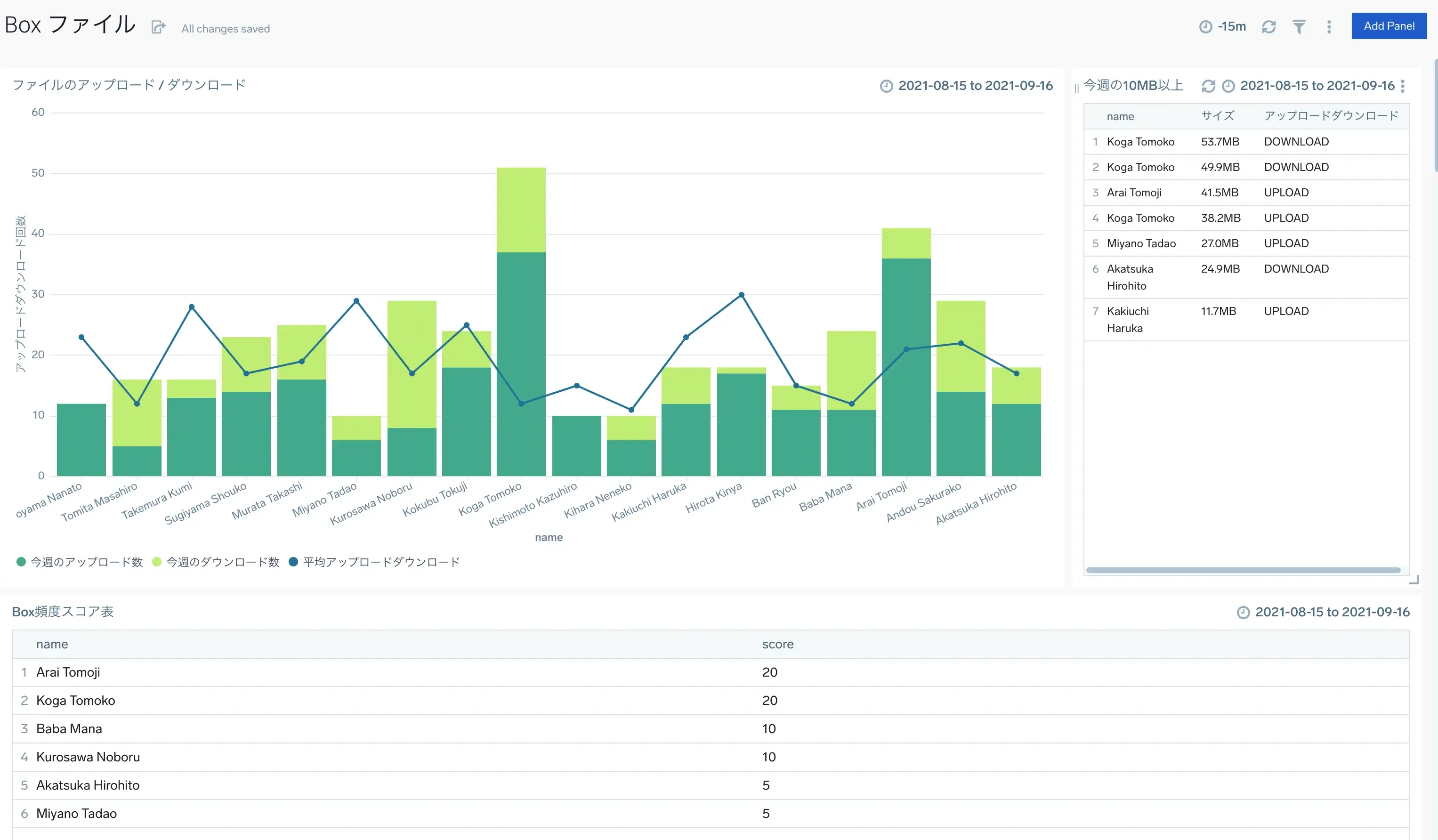 Sumo Logic を利用して boxのログを可視化したダッシュボードの例