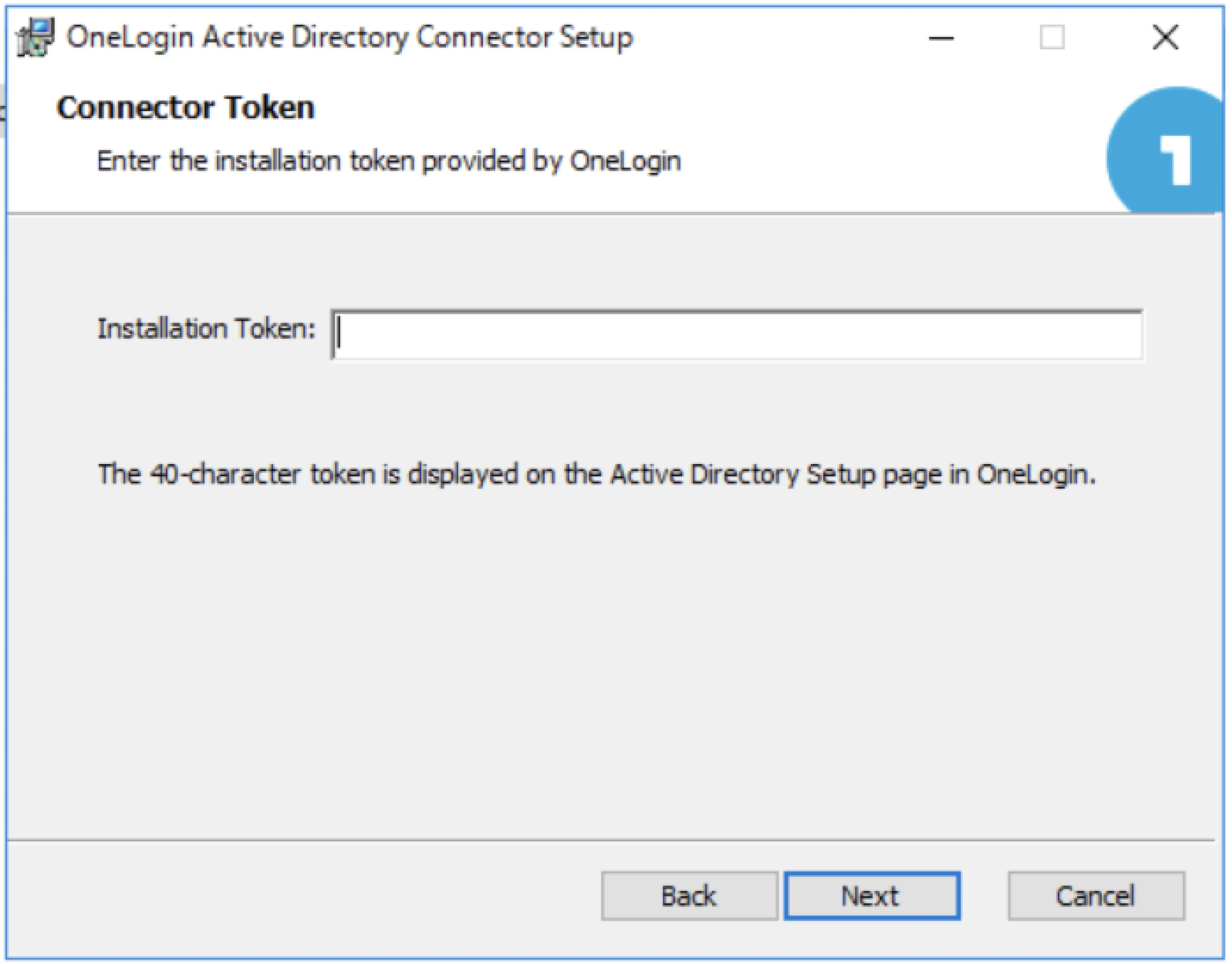 インストールの開始 手順2.1.4で 青いボタン をクリックしてダウンロードしたファイル「onelogin_ad_connector.msi」を実行し、ウィザードに従ってADコネクタをインストールします。 *インストールを実行する際は、必ずドメイン管理者でログインして実行して下さい。インストーラーを実行する際に「管理者として実行」は選択しないでください