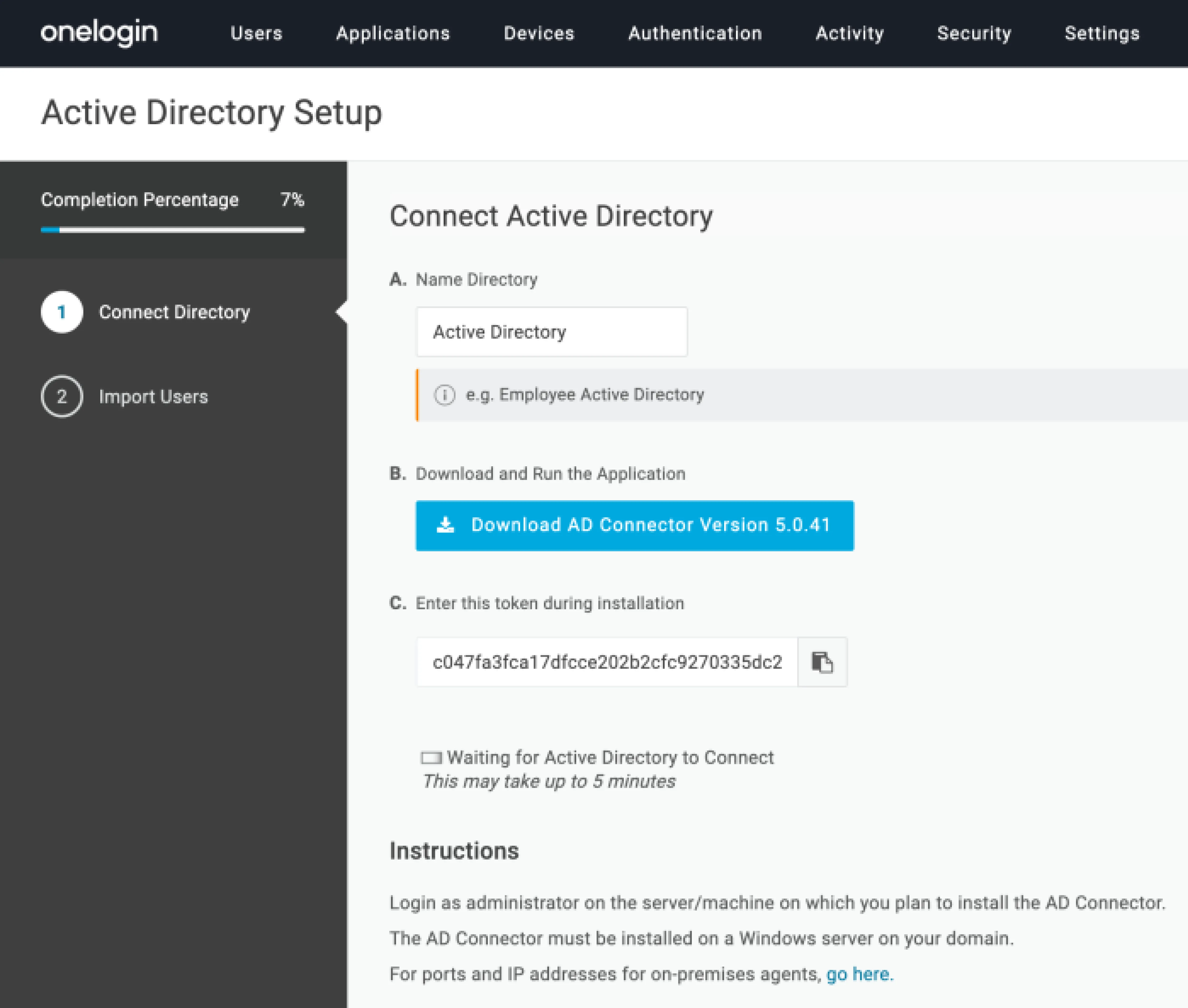 2.1 OneLoginにActive Directory連携設定を追加する