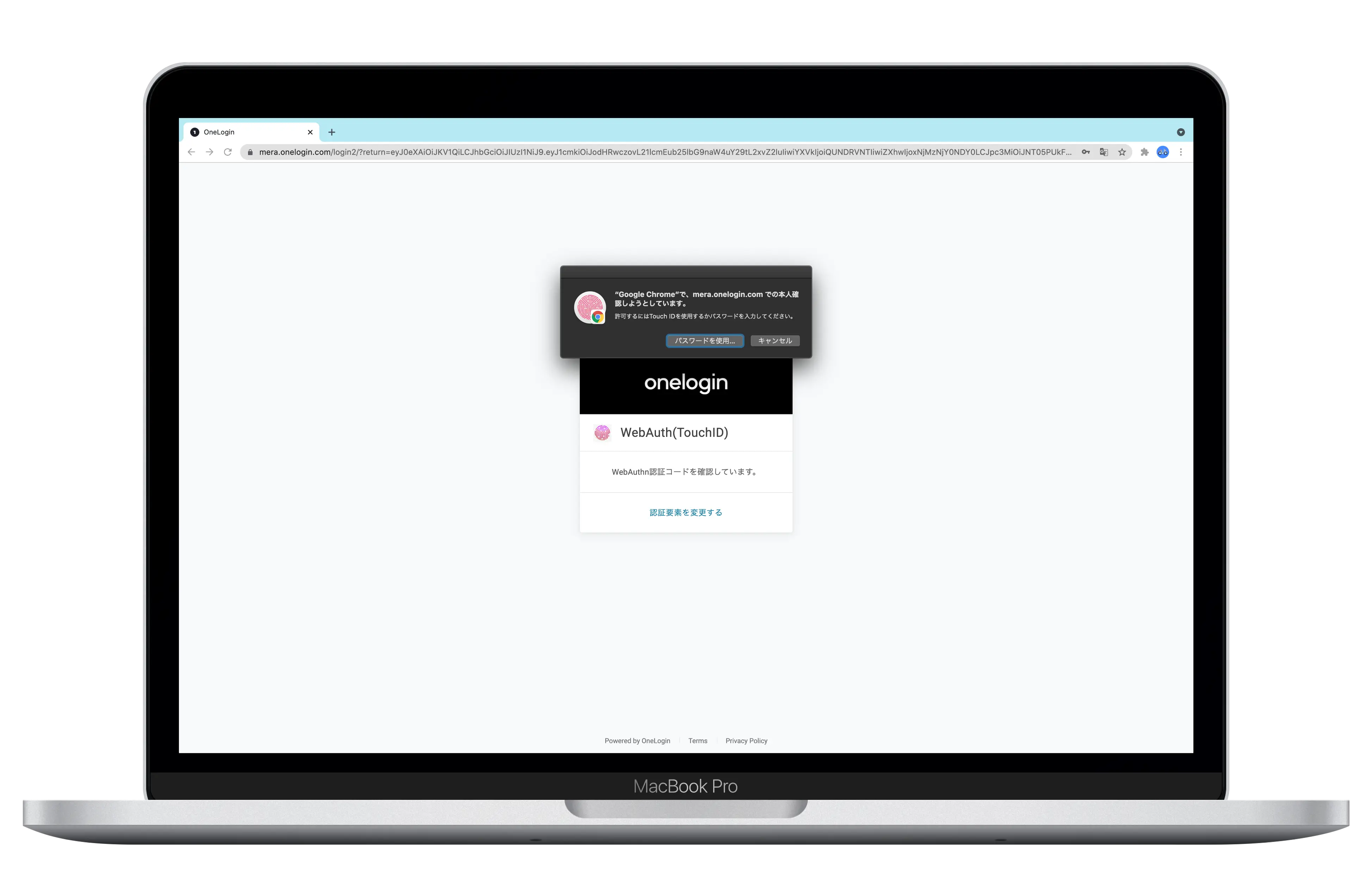 このページでは、Dropbox へパスワードレスにログインをする方法について紹介をしています。 具体的には、OneLogin の SmartFactor Authentication オプションをご利用いただくことで、ID・証明書認証・生体認証の 3 つで認証を行います。しかし、実際には証明書認証は裏側で実行されるため、エンドユーザーが行うのは ID の入力と生体認証のみとなります。