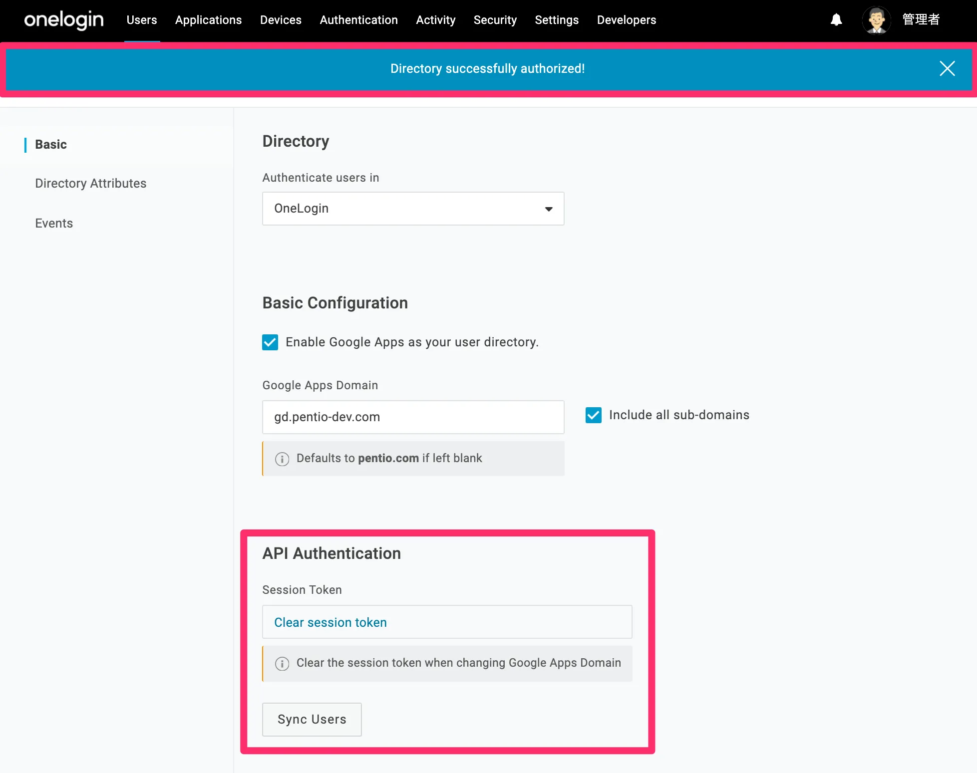 以上で、OneLoginとGoogle DirectoryをAPIで連携する方法及び基本的なGoogle Directoryとのディレクトリ連携の設定は終了です