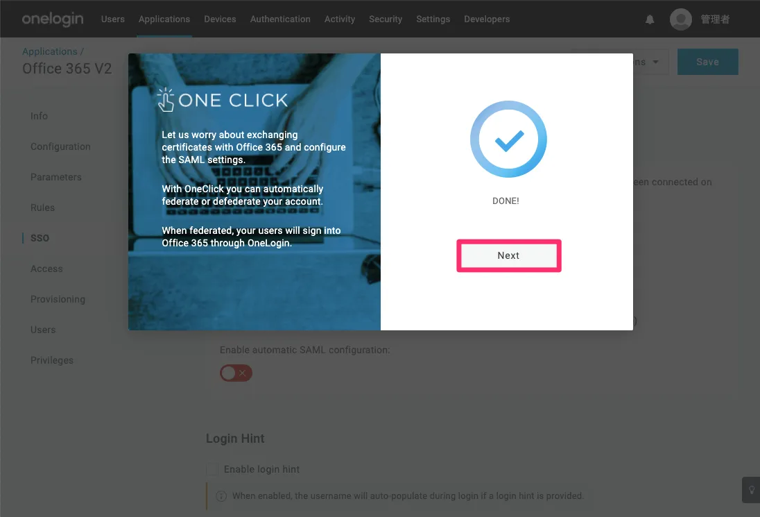 OneLoginからOffice 365へのシングルサインオン