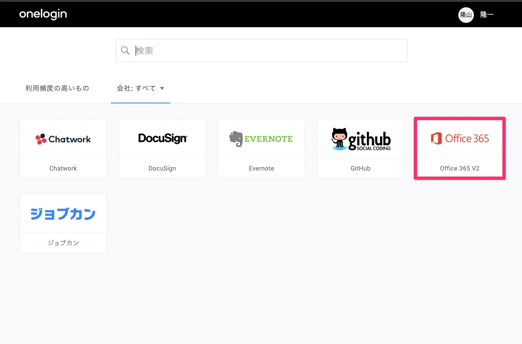 OneLoginのポータル画面から、Office 365のアイコンをクリックすることでOffice 365にログインすることができます。