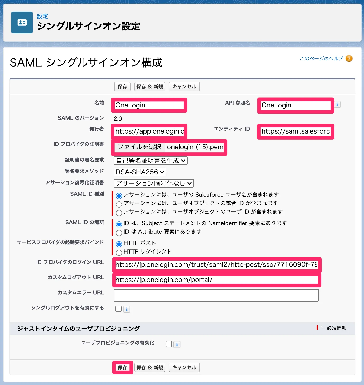 OneLoginからSalesforceへのシングルサインオン