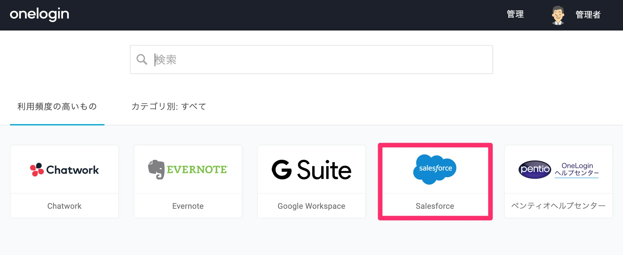 OneLoginのポータル画面から、SalesforceのアイコンをクリックすることでSalesforceにログインすることができます。