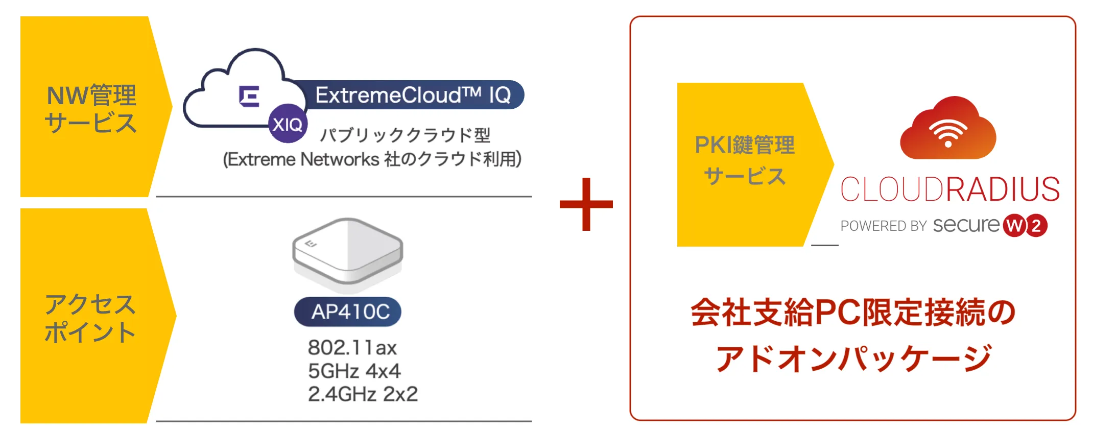 - SecureW2アドオンパッケージにExtreme Networks製APとネットワーク管理サービスは含みません