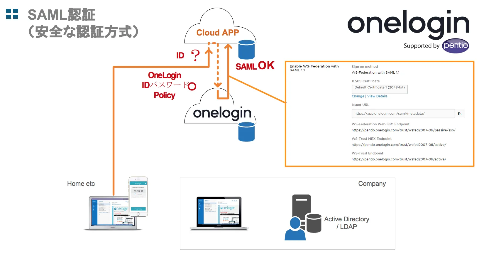 OneLoginは国内SSOサービスと毛色が違うと判断しました。一般的に「Office 365 WS-Federation設定は難しい・面倒くさい・トラブルが出やすい」と言う印象がありました。検証時の”サービスO”や別の(略称)”サービスH”を使うと一見簡単に利用できそうと思い、利用検証してみましたが、難しくは無いようにみえるけれどもやはり面倒くさい・トラブル障害が出やすかったという結果でした。