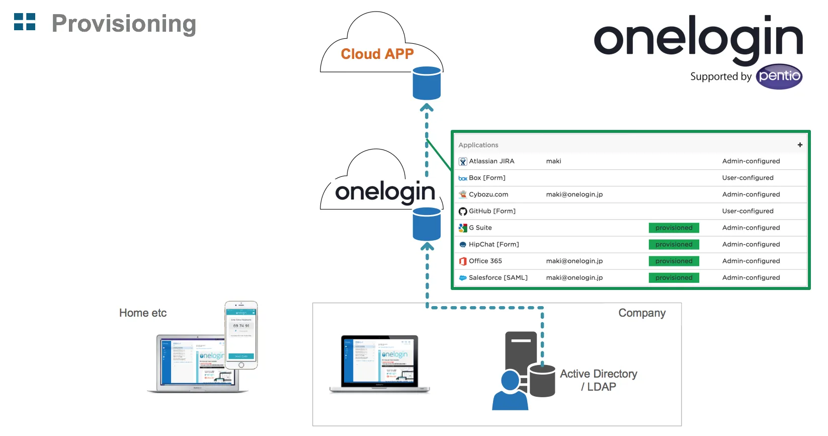 現在はExchange Online, Office 365のSSOを社内・海外からもOneLoginを利用しています。今後は社内ポータル(Intra-mart)やクラウド型経費精算システムで利用予定です。(馬場)