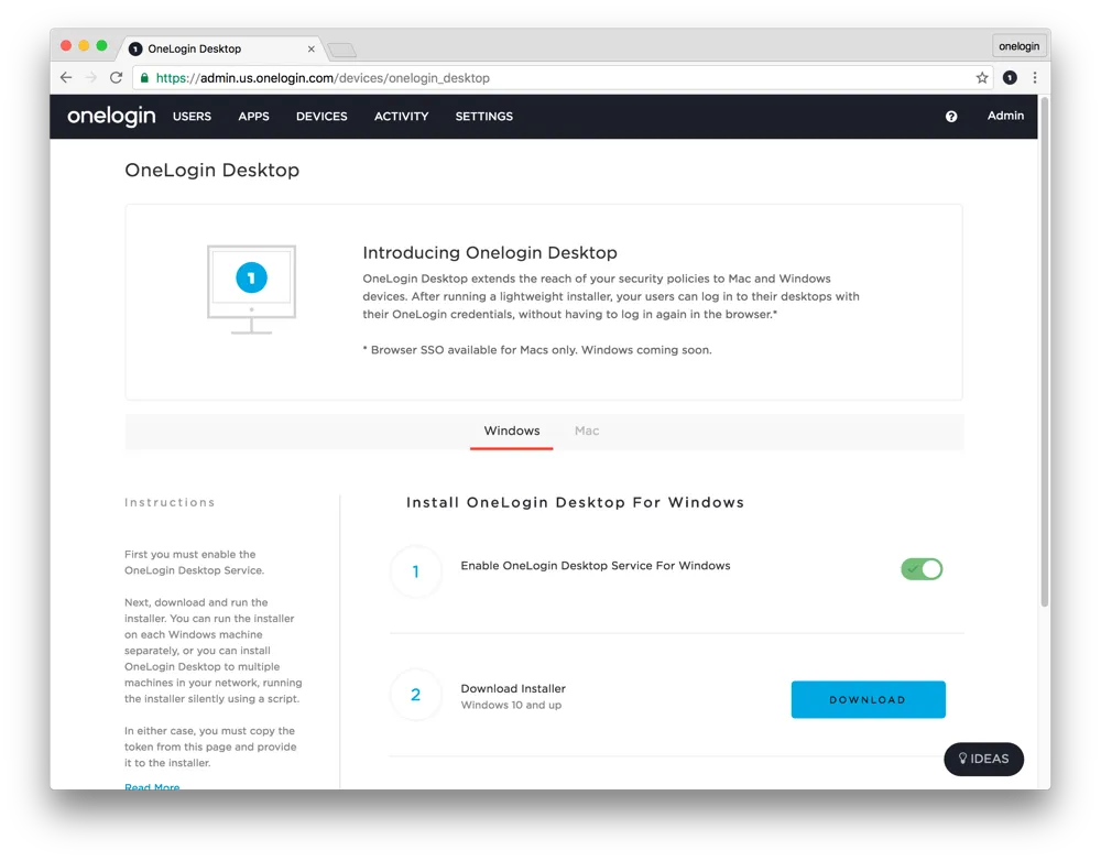 1. OneLogin Desktopをアクティベート