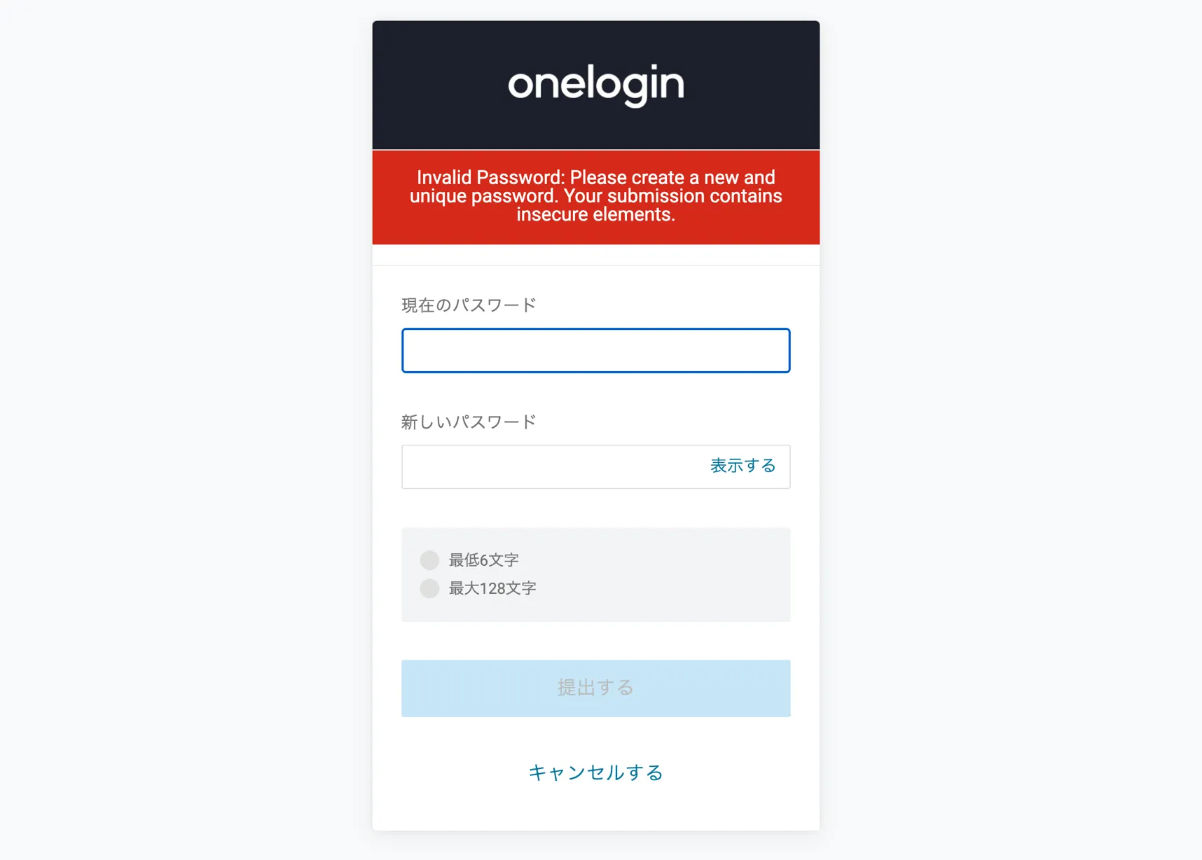 パスワード変更時のエラー