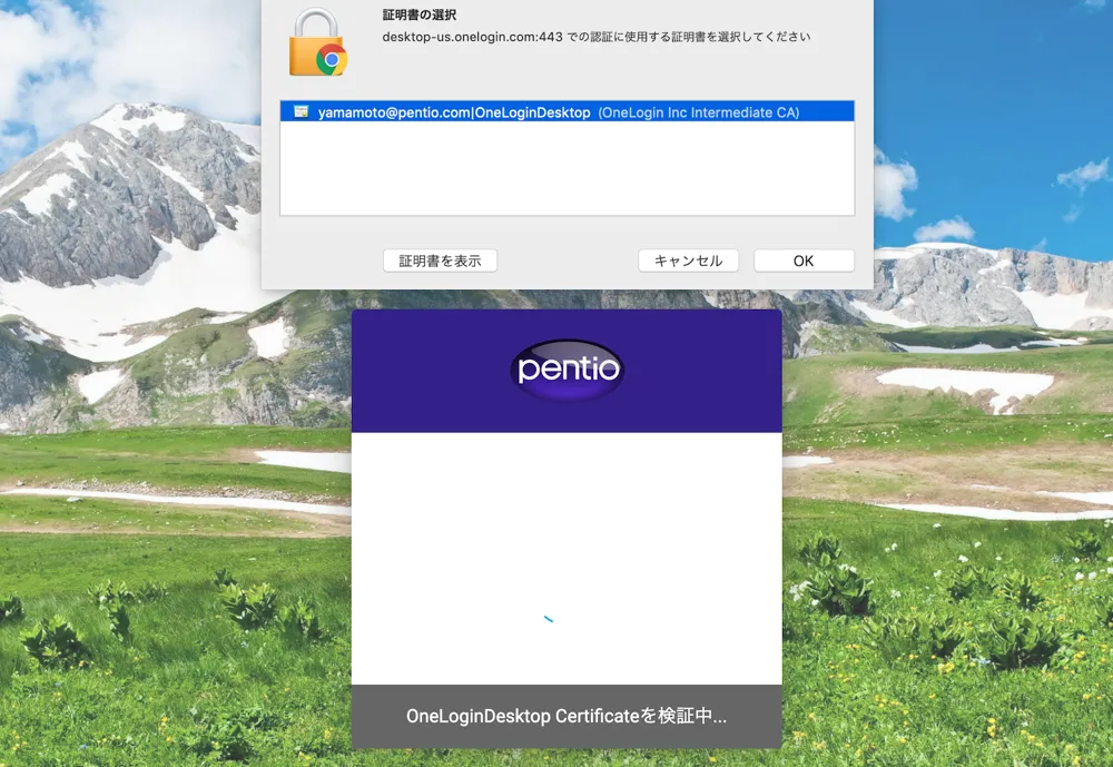 OneLogin Desktopの証明書を使用したログイン