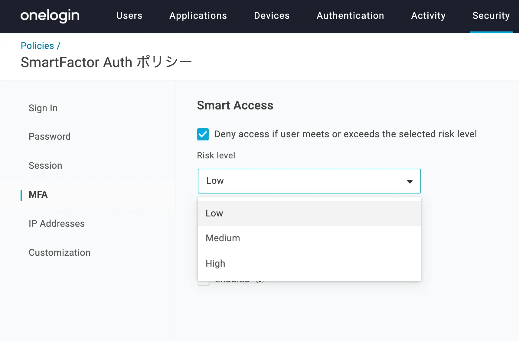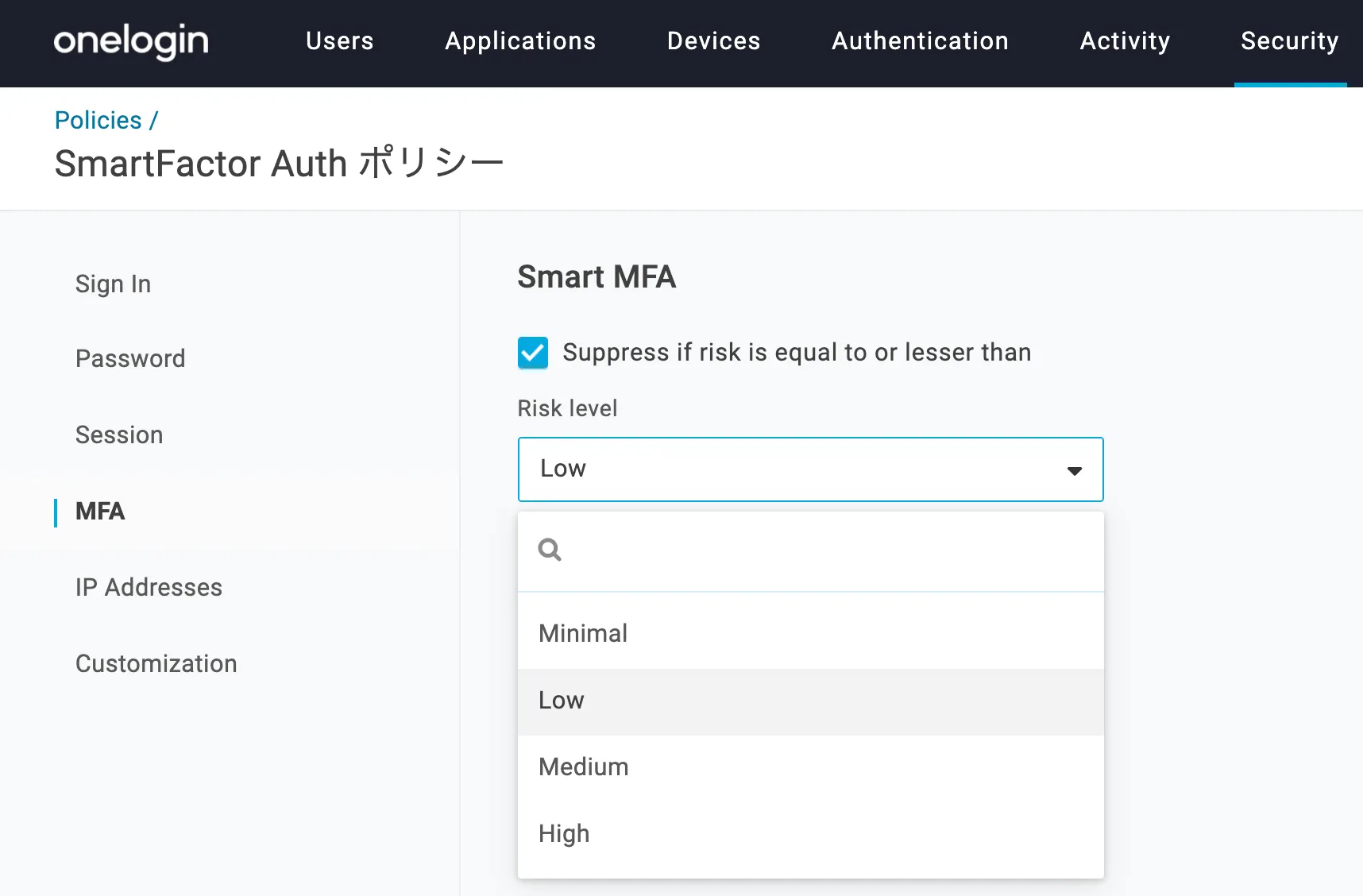 Smart MFAを有効にすると、リスクスコアが高く本人確認が必要な場合にのみユーザーにMFAを要求します。