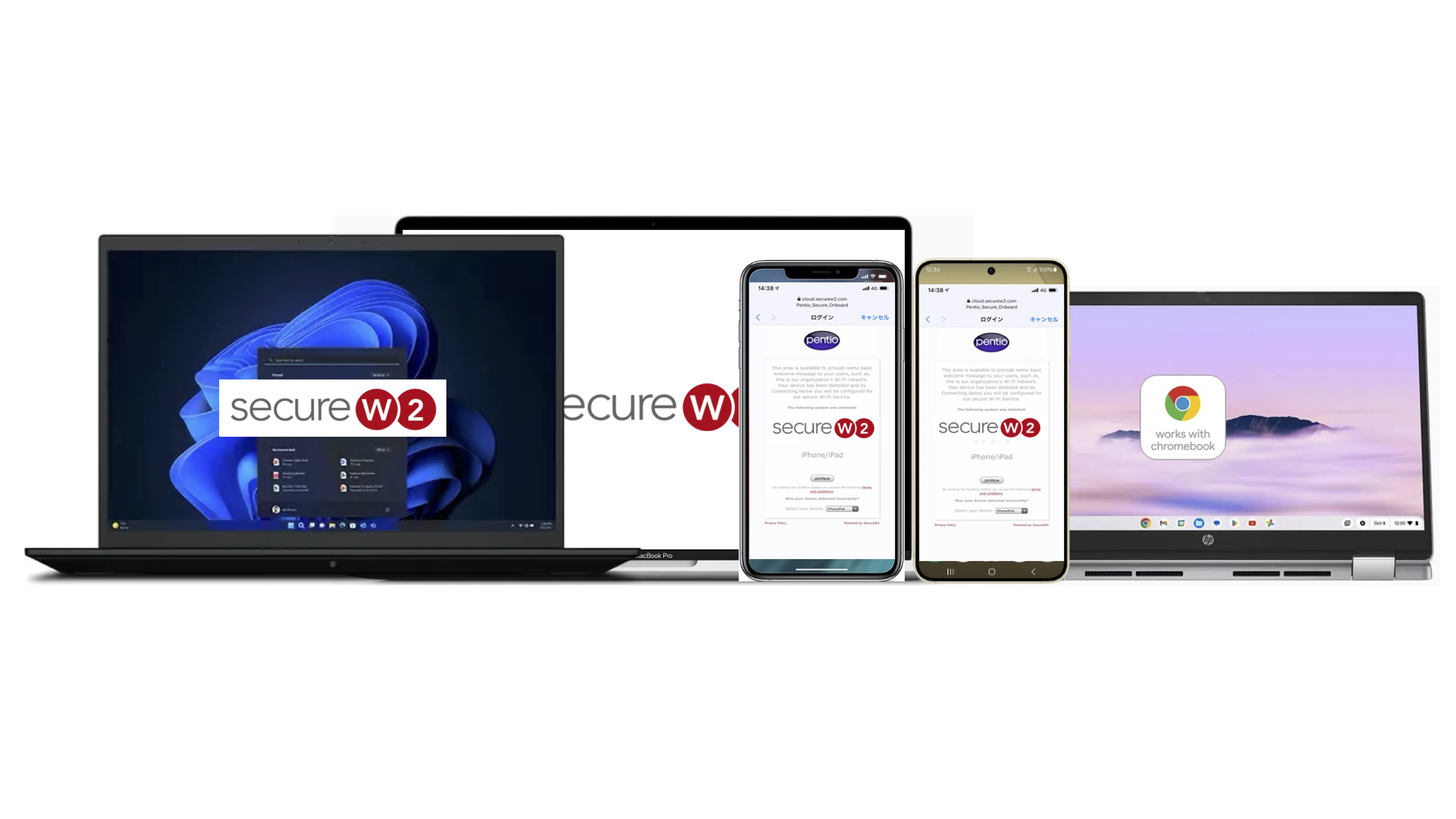 SecureW2は、オンボーディング(証明書配布)と同時にデバイスの無線LAN認証も実現します。無線LAN認証には、EAP-TLS証明書とネットワークプロファイルが必要です。SecureW2はこれらをセットで配布することで、オンボーディング(証明書配布)と同時に無線LAN認証を行います。