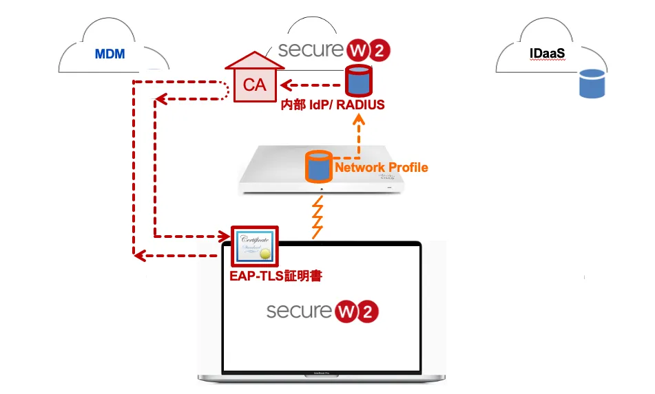 - SecureW2は証明書をMDMを通じてデバイス端末に配布する