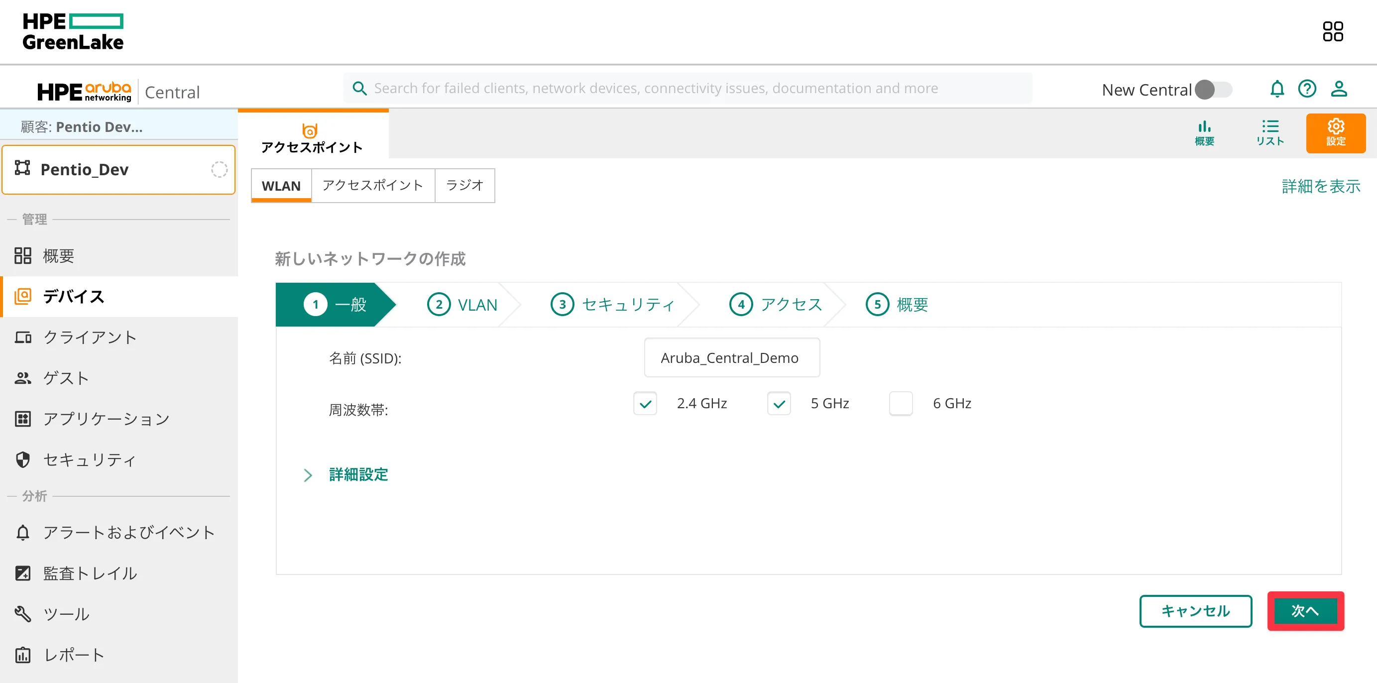 - Aruba Instant APがAruba Centralで管理されており、サブスクリプションの割り当てやサイト・グループの作成が完了していること