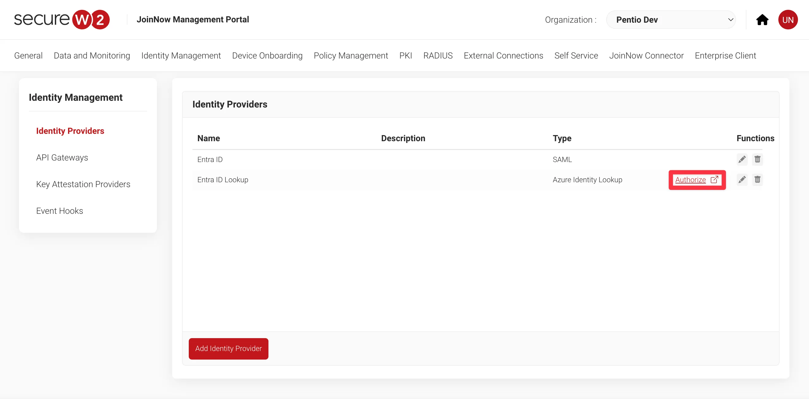 Identity Providerの一覧で先ほど作成したIdPをAuthorizeし、このIdentity