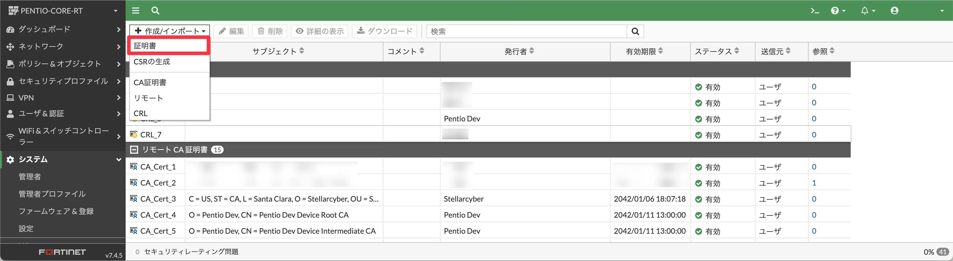 本記事では、以下の認証局を使用します。- ルート認証局 : Pentio Dev Device Root CA