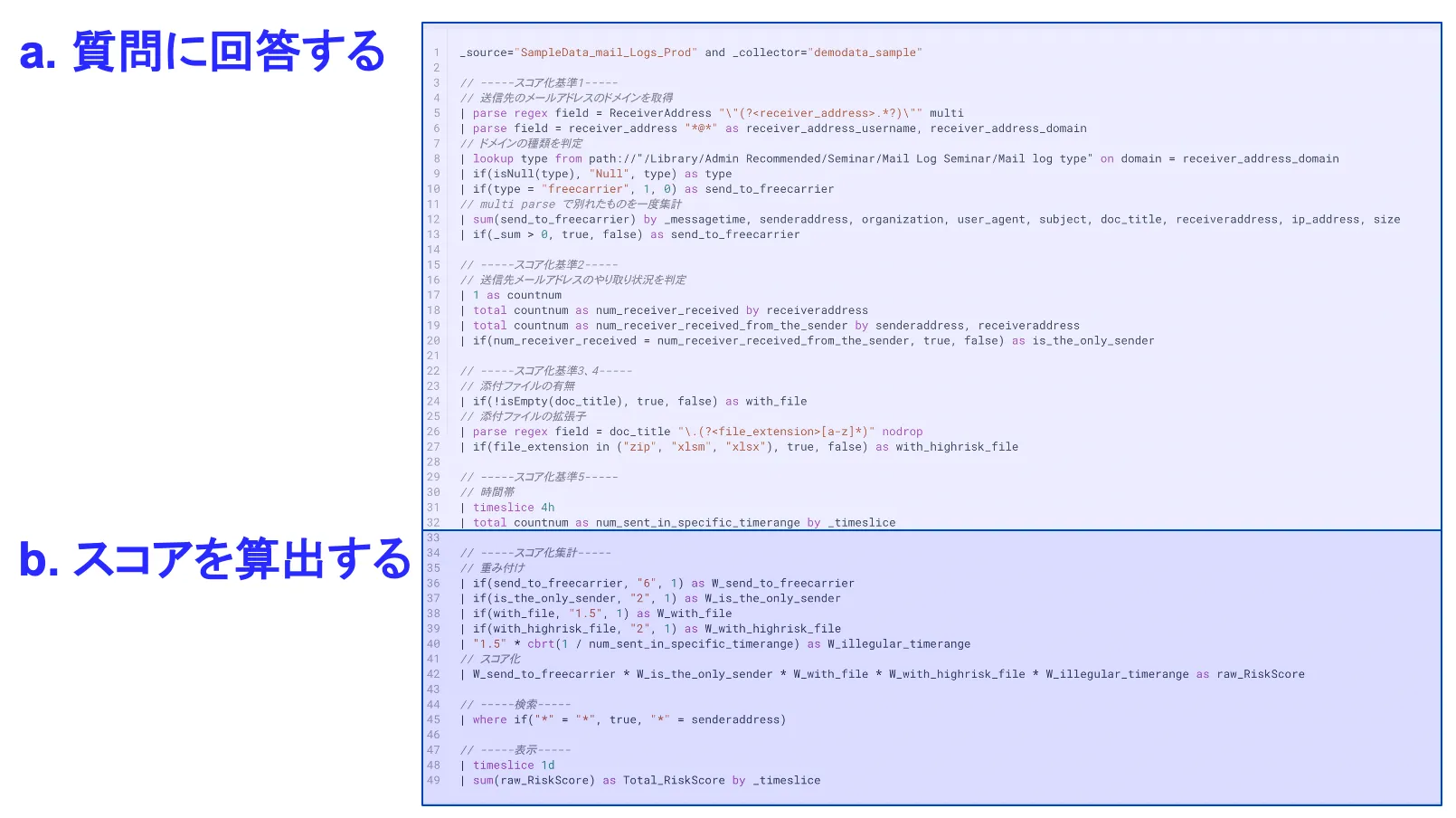- Sumo LogicのクエリはSQLベースの言語で構成されており、シンプルかつ豊富なオペレータが揃っています。また、処理速度も高速であり、大量のデータを高速に処理することが可能です。カスタムでダッシュボードを作成する場合やログ分析を行う際はこのクエリを使用することによって簡単かつ高速に処理することができます