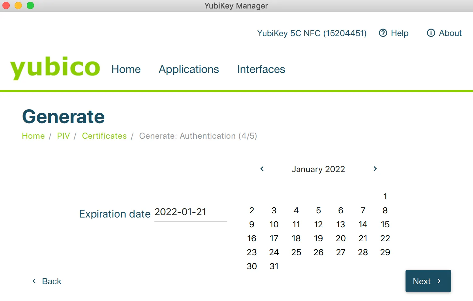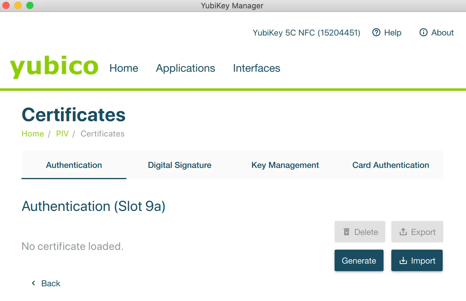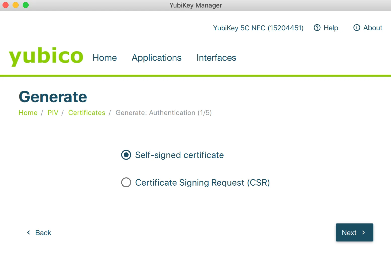 YubiKey Managerを使用した鍵ペア(秘密鍵)と自己署名証明書の作成方法