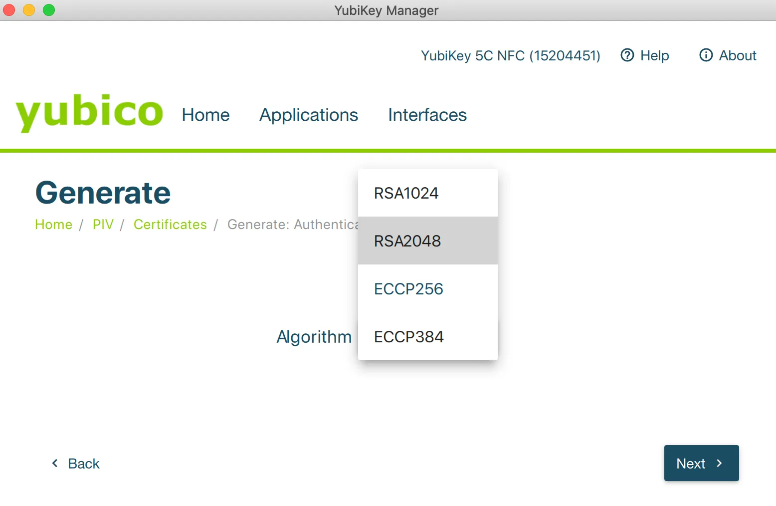 Algorithmを [ RSA2048 ] を選択して [ Next ] をクリック